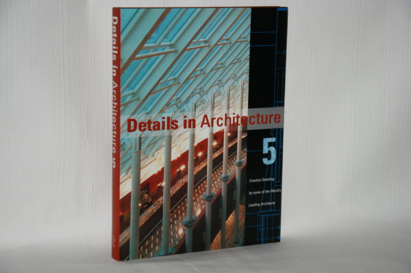 В издании Details in Architecture 5. Creative Detailing by Some of the World’s Leading Architects представлено множество проектов, собранных в Северной и Южной Америке, Европе, Азии и Австралии, с эскизами, рисунками и фотографиями отдельных архитектурных деталей. Некоторые из них сугубо функциональны, а другие в том числе и декоративны. Детали могут быть использованы для создания зданий, связанных с данным местом, традициями и историей. Альбом включает детали корпоративных и промышленных строений, жилой и ландшафтной архитектуры.